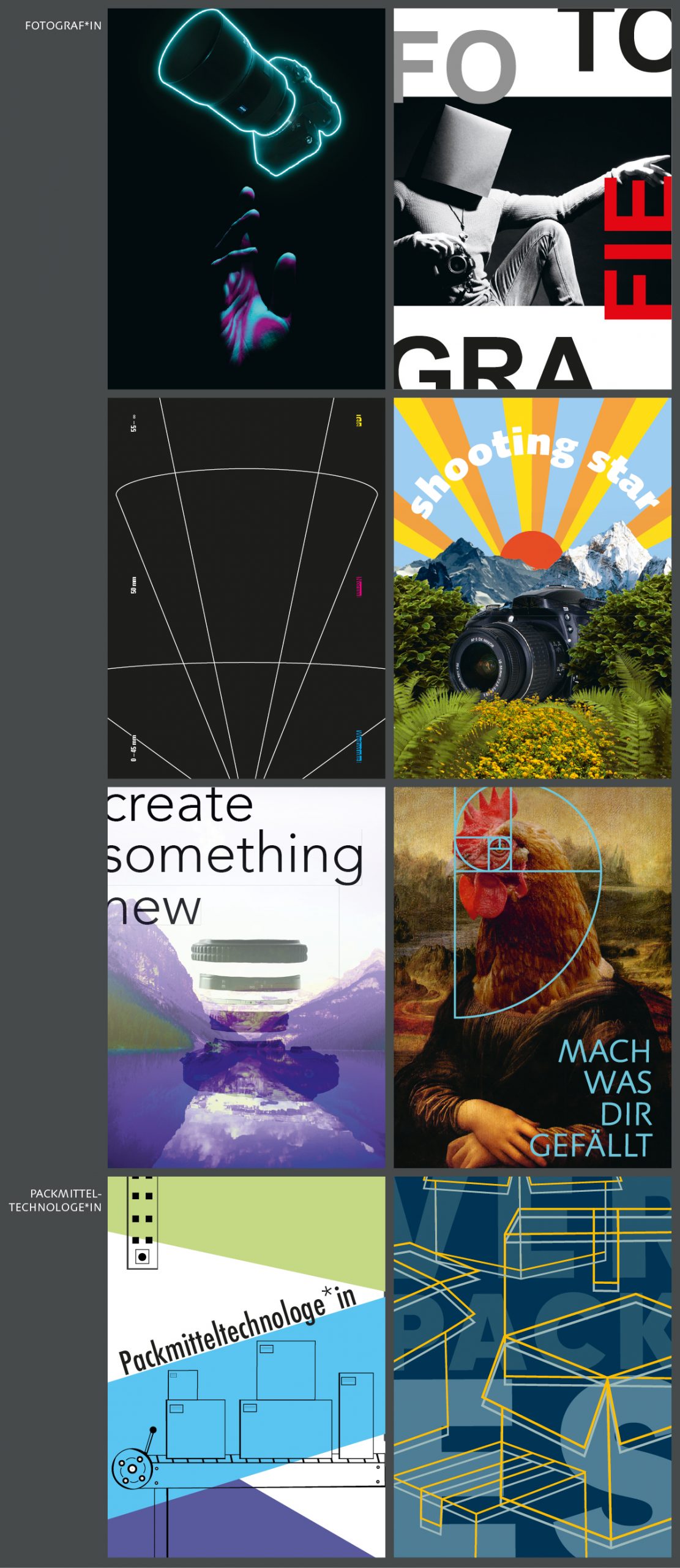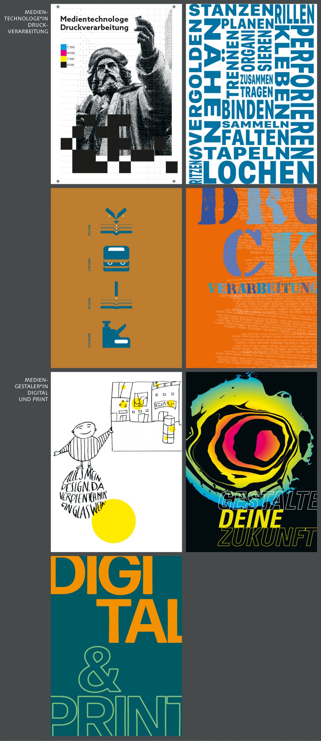 Es entstanden im klassenübergreifenden Fernunterricht, in Teamarbeit und vollkommen eigenständig, 15 farbstarke und humorvolle Kartenentwürfe. Die Karten werden im nächsten Schuljahr in der hausinternen Offsetdruckerei von den Gestalter*innen selbst realisiert und auf der Stuzubi-Messe als Werbematerial an die Besucher verteilt. Die angehenden Grafik-Designer*innen freuen sich schon auf den Produktions-Workflow und die professionell, nach eigenen Wünschen und Vorstellungen, gefertigten Druckprodukte.