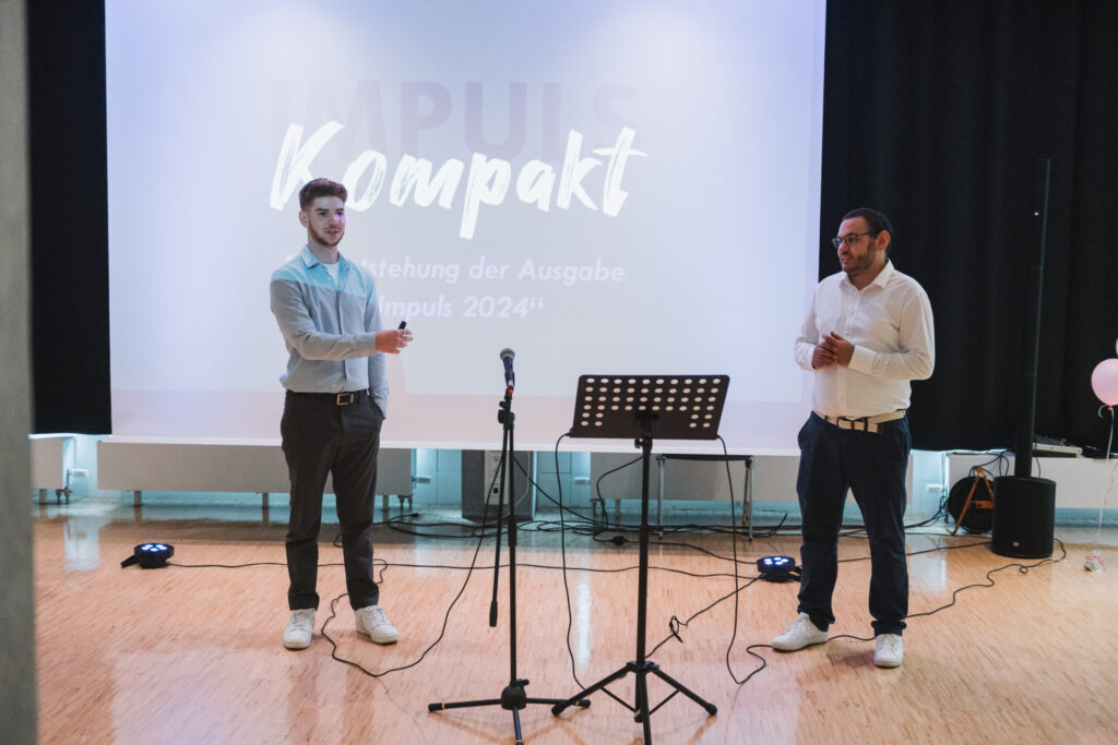 Am vergangenen Freitag war es endlich so weit. Die Technikerklasse der Johannes-Gutenberg-Schule konnte voller Freude knapp 40 Gäste, darunter Lehrkräfte, Familie, Freunde und auch Unternehmen, die bei der Impuls-Publikation mitgearbeitet haben, in der Aula des Schulgebäudes begrüßen.