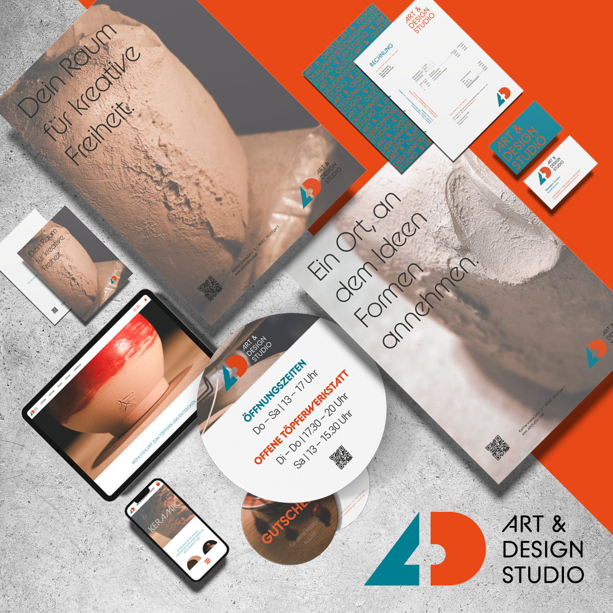 Der Projektstart begann für alle Schüler:innen mit der Wahl eines »echten« Unternehmens und einem Briefing. Über die Zielgruppenbeschreibung bis zur Werbekonzeption, entstanden Logos, erweiterte Geschäftsausstattung, Plakat-/Anzeigenserie, Bildwelt, weitere Kommunikations- bzw. Werbematieralien sowie Socialmedia-Auftritt und Website. Die entstandene Firmen-Identität wurde in einem Design-Manual komprimiert dokumentiert und mit einem Mockup-Composing visuell präsentiert.Das Corporate-Design-Projekt ist am Berufskolleg Grafik-Design im Abschlussjahr fächerübergreifend in Grafik-Design, Typografie, Schriftgrafik, Medientechnik, Screendesign und Werbelehre fest etabliert. Einzelne Ergebnisse werden von den Unternehmen übernommen – alle Schüler:innen nutzen das Projekt in jedem Fall für ihr anstehendes Portfolio.