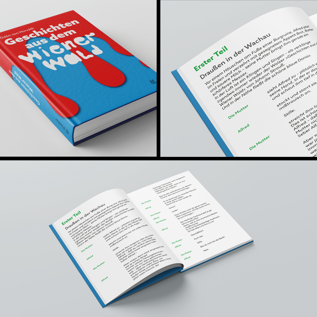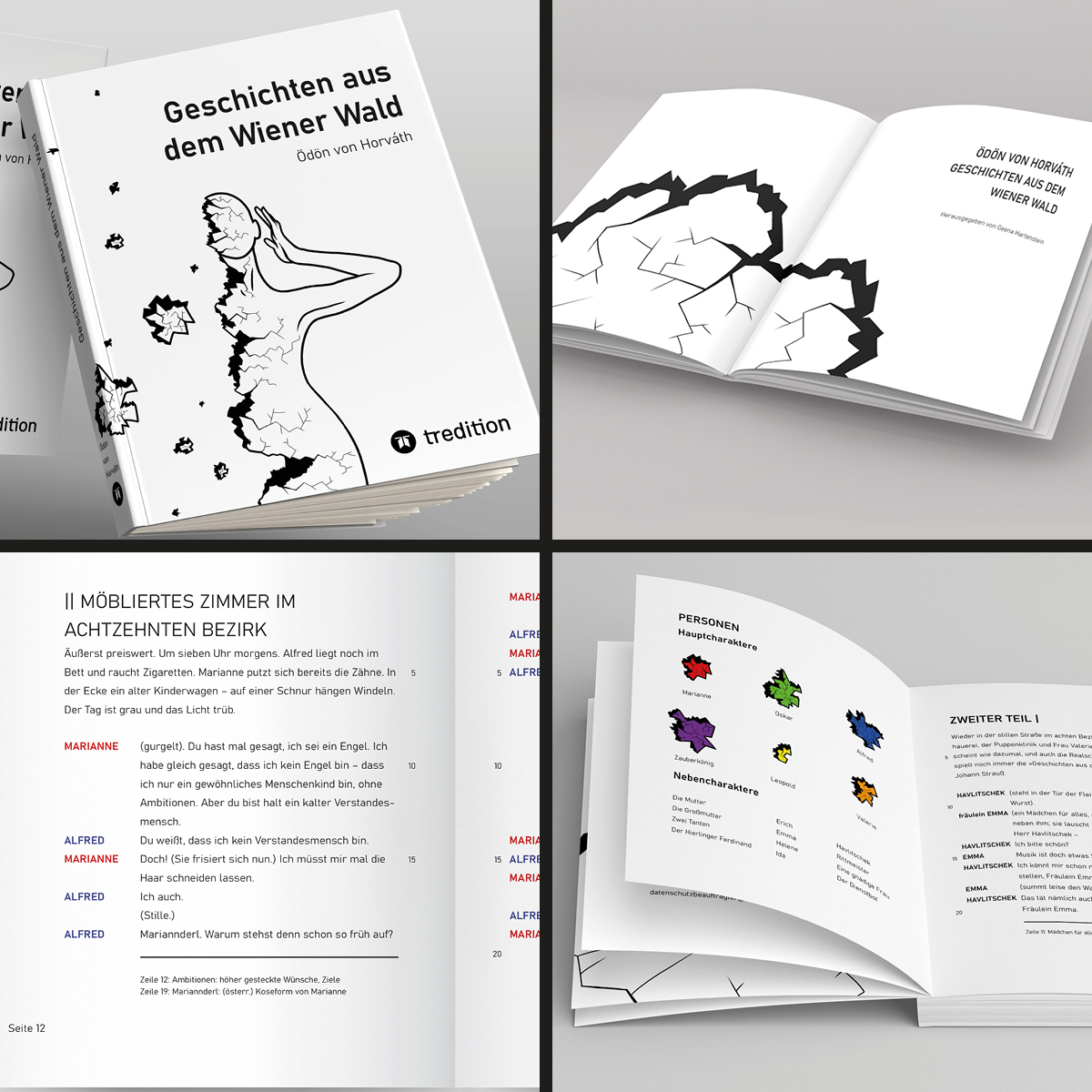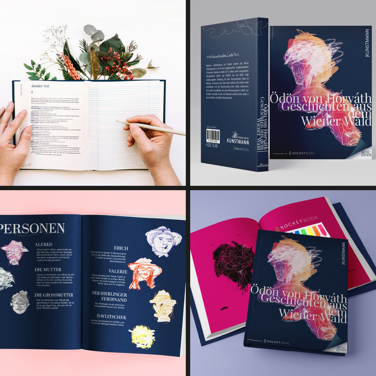 So wurde in Werbelehre eine Werbekonzeption (inklusive Zielgruppendefinition) erstellt, in Deutsch beschäftigten sich die Klassen mit dem Inhalt und schrieben neue Klappentexte, in Typografie und Schriftgrafik gestalteten Sie einen neuen Umschlag, die Titelei sowie Beispielseiten aus dem Inhalt und in Medientechnik entstanden die MockUps, die für die Kundenpräsentation in Werbelehre aufbereitet wurden.