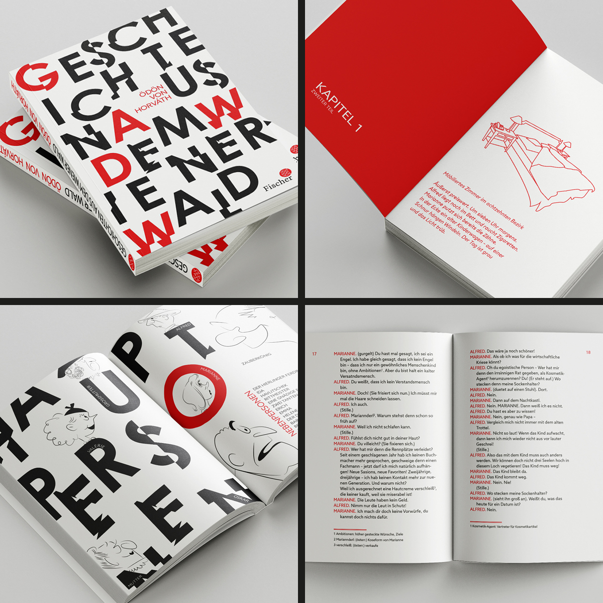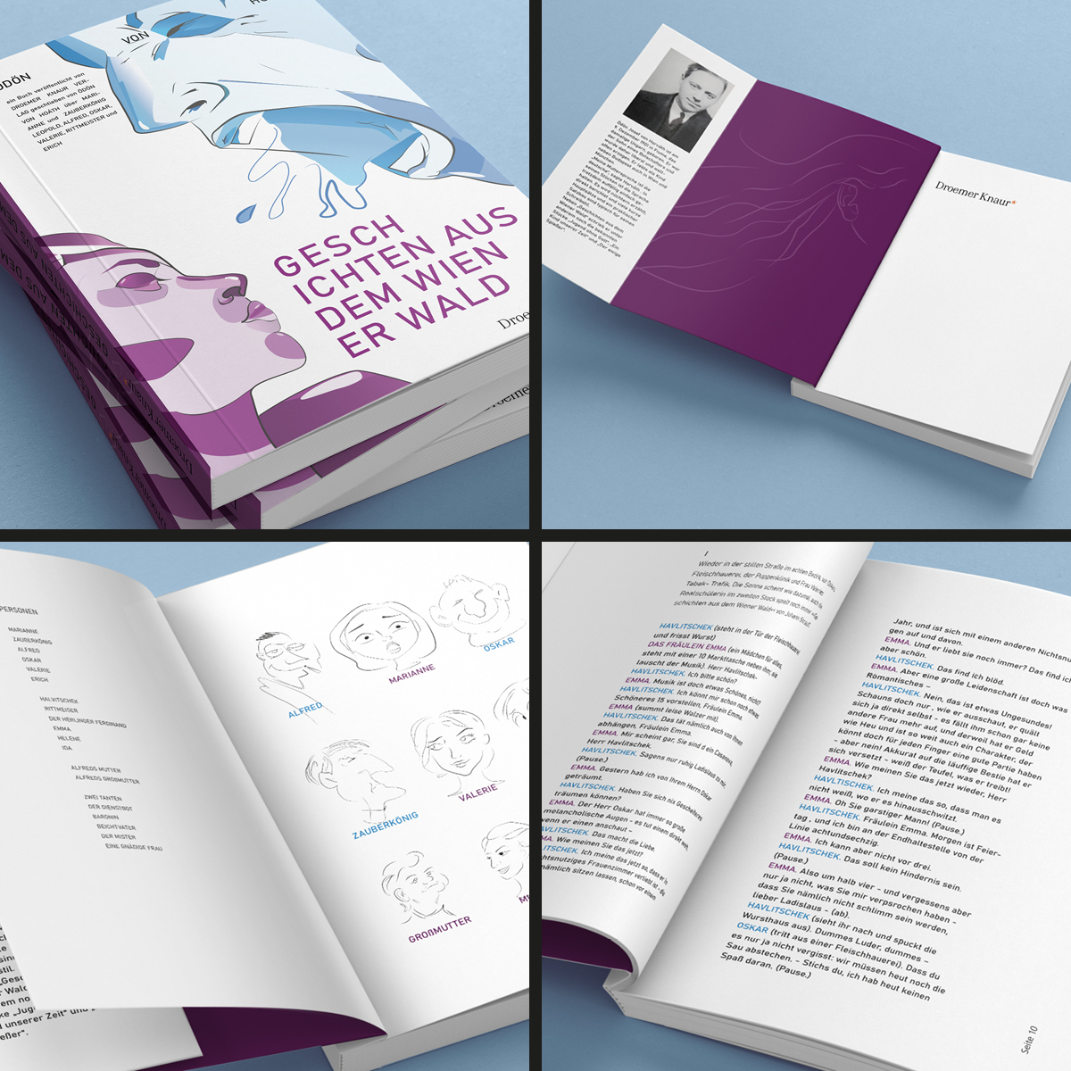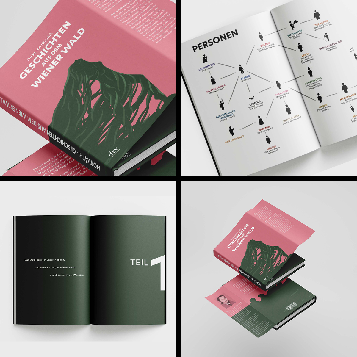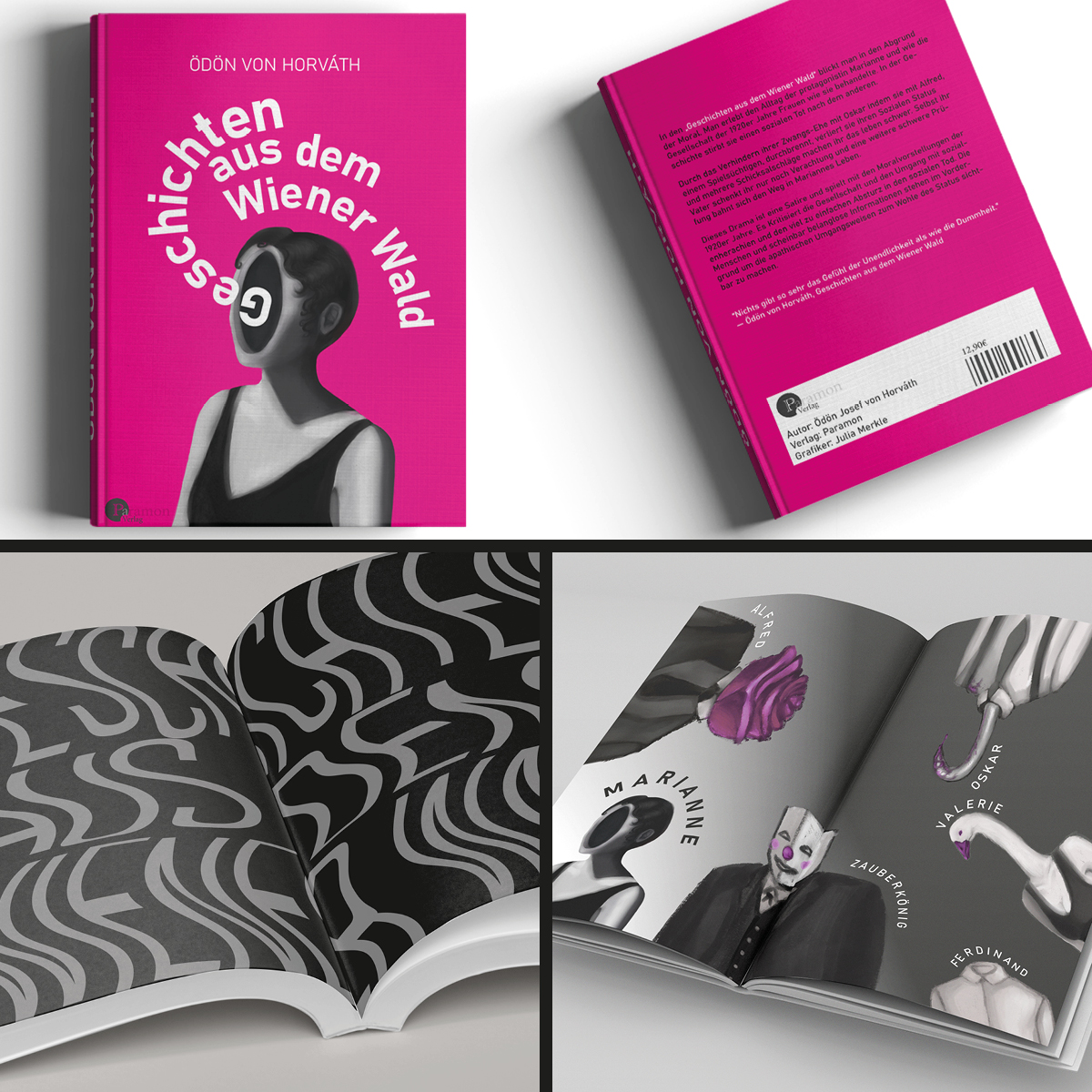 So wurde in Werbelehre eine Werbekonzeption (inklusive Zielgruppendefinition) erstellt, in Deutsch beschäftigten sich die Klassen mit dem Inhalt und schrieben neue Klappentexte, in Typografie und Schriftgrafik gestalteten Sie einen neuen Umschlag, die Titelei sowie Beispielseiten aus dem Inhalt und in Medientechnik entstanden die MockUps, die für die Kundenpräsentation in Werbelehre aufbereitet wurden.