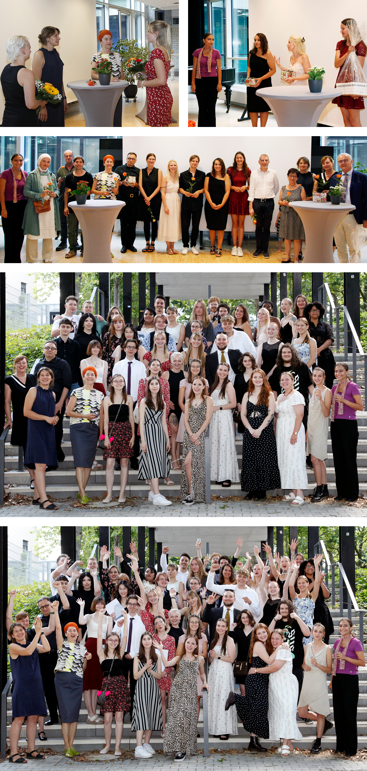 Abgerundet wurde die Feier am Ende mit einem Glas Sekt und Finger-Food-Buffet. Dann ging es auf den Schulhof zum Gruppenfoto-Shooting, bevor es dann tatsächlich hieß: Und Tschüss ihr Lieben – wir haben euch ins Herz geschlossen und werden euch vermissen. Wir wünschen euch alles Gute für eure berufliche und private Zukunft, findet euren Weg.