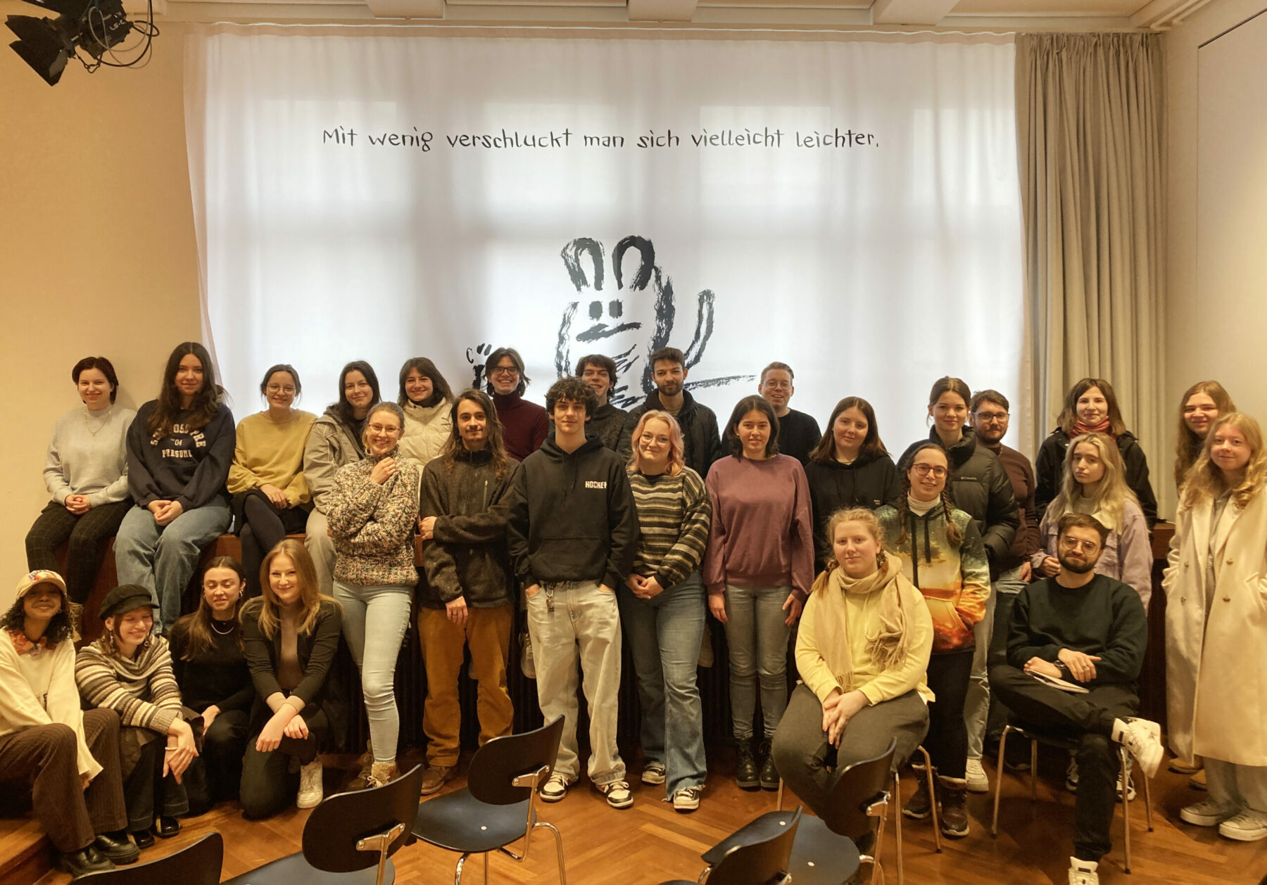 Mit diesem tiefgründigen Zitat von Franz Kafka im Kopf begaben sich die Klassen 3/1 und 3/2 des Berufskollegs für Grafikdesign der Johannes-Gutenberg-Schule in Stuttgart am Montag, 22. Januar auf eine faszinierende Reise in die Welt des berühmten Schriftstellers. Ziel ihres Ausflugs war die Ausstellung „Komplett Kafka“ im Literaturhaus Stuttgart, die einen umfassenden Einblick in das Leben und Werk des Autors bot.