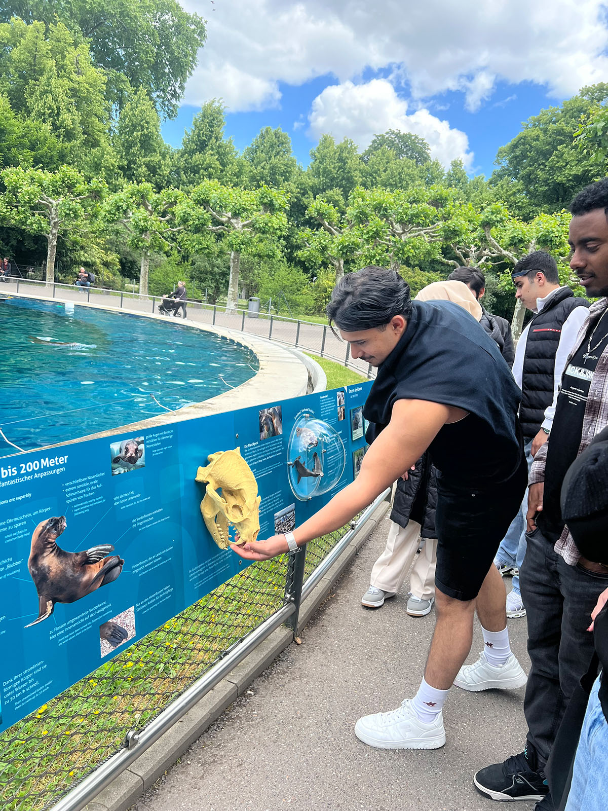 Der Tag begann mit einer zweistündigen Führung zum Thema Raubtiere, die auf großes Interesse stieß. Die Schülerinnen und Schüler erfuhren spannende Details über verschiedene Raubtiere wie Löwen, Tiger, Schneeleoparden und Hyänen. Besonders faszinierend fanden viele die Informationen über die Lebensweise und Jagdtechniken der Tiere sowie die Herausforderungen, denen sie in der Wildnis begegnen. Die Führung ermöglichte den Jugendlichen, Fragen zu stellen und ihr Wissen aktiv einzubringen – auf Deutsch natürlich! So wurde die Exkursion gleichzeitig zu einem wertvollen sprachlichen Lernmoment.