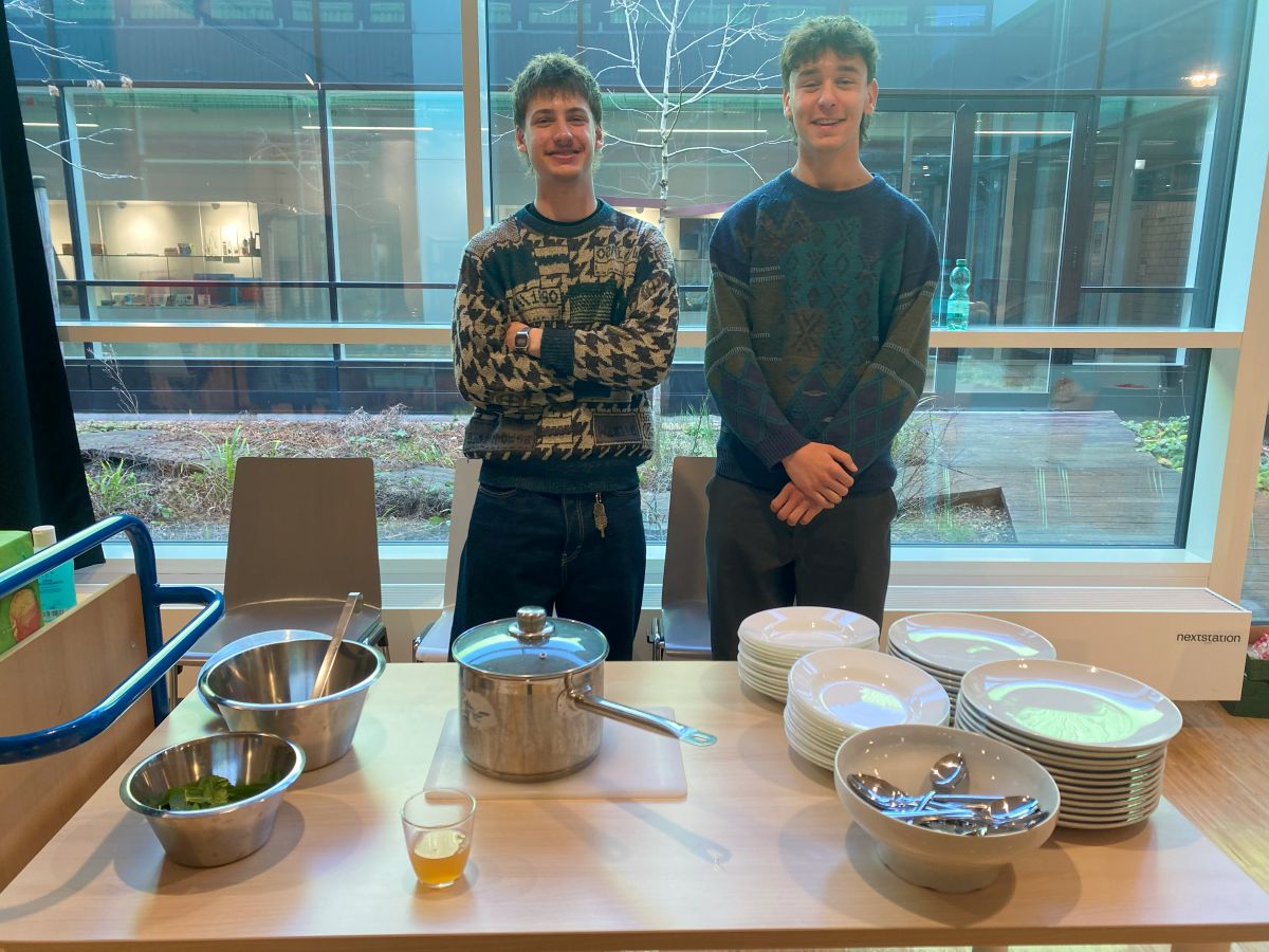 Julian von der TG 12 war der Chef an der Essensausgabe. Es gab einen Linseneintopf mit Sellerie, Haselnüssen und Minze. Viele Schüler und Schülerinnen aus den verschiedenen Klassen waren spontan bereit beim Abbau zu helfen. Allen Helfern und Helferinnen, hier an dieser Stelle ein großes Dankeschön!
