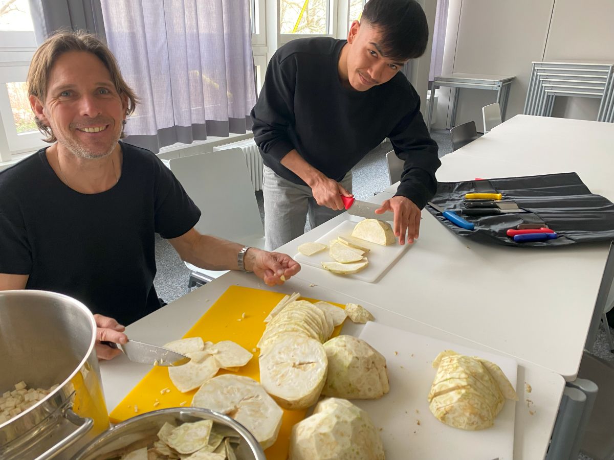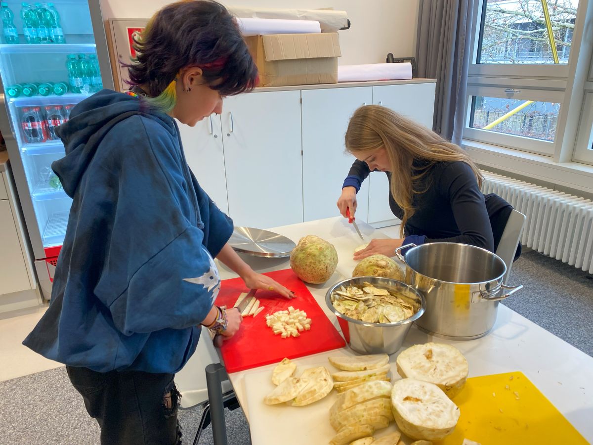 Von der erste Idee bis zur Umsetzung am Dienstag den 11. März, gab es einiges zu tun für die SMV. Einteilung und Organisation der Helfer:innen / Schulungen / Terminfindung / Einkauf / Werbung im Stadtteil und in der Schule / Informationen an die Klassen / Einkaufen / Kochen / Aufbau / Abbau …