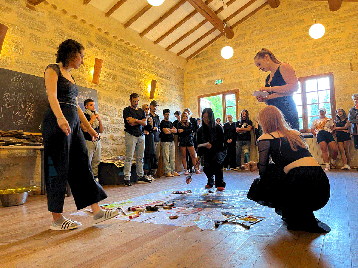 Inspiriert durch Lesungen mitgebrachter Literatur entwickelten die Schüler:innen eigene Texte. Die abendlichen Vorträge wurden mit viel Applaus aufgenommen. Das Highlight zum Abschluss bildete neben einer großartigen Ausstellung der entstandenen Arbeiten der Performanceabend in 3 Akten und insgesamt 13 Szenen sowie einem Prolog und einem Epilog. In kleinen Teams erarbeiteten die Schüler:innen gemeinsam mit den Lehrkräften die individuellen Szenen an verschiedenen Orten. Das Publikum war begeistert, die jeweiligen Akteure mächtig stolz auf ihre Darbietungen.