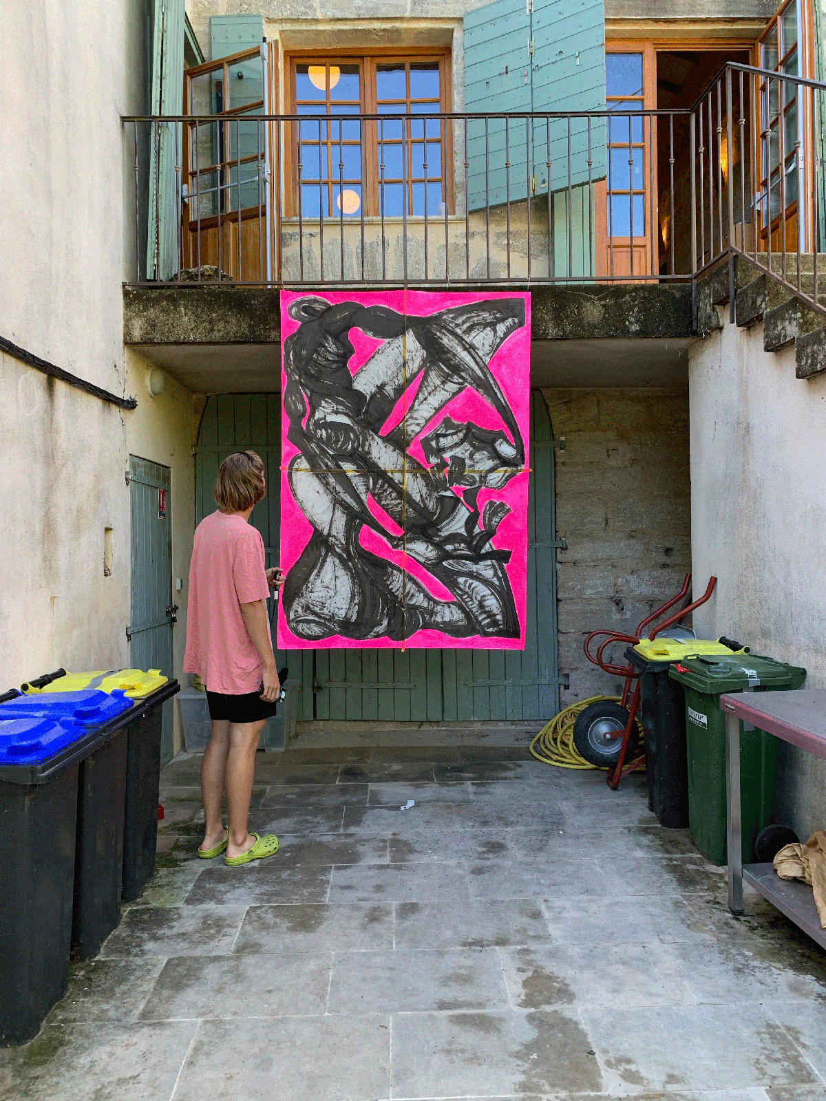 Im Rahmen der 12-tägigen Arbeitsexkursion des Berufskolleg Grafik-Design beschäftigen sich die Schüler:innen der dritten Klassen zeichnerisch, fotografisch, installativ und skulptural mit dem gestellten Thema TRANSFORMATION. Zur Realisation der individuellen Konzepte der Schüler:innen bot das Lehrerteam ein reichhaltiges Materialbuffet, eine mobile Dunkelkammer und verschiedenste Anregungen.