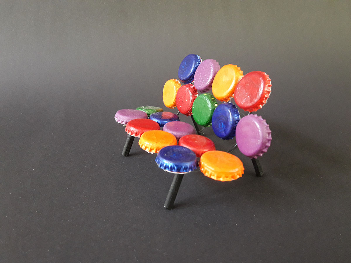 Aus einer Auswahl von Stuhl-Designklassikern haben sich die Schüler und Schülerinnen der Jahrgangsstufe 1 (12. Klasse) zwei Stühle ausgewählt und als Modell nachgebaut. Allesamt aus Haushaltsmaterial – gegebenenfalls auch aus dem Hausmüll.