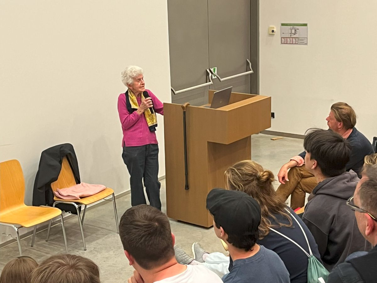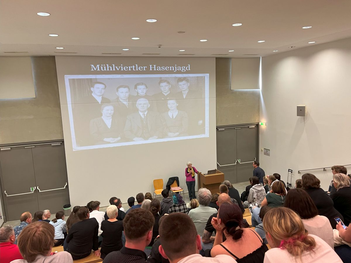 Ein besonderes Highlight war das Zeitzeugengespräch mit Anna Hackel, deren Familie zwei russische Gefangene versteckte und rettete. 1945 gelang 500 russischen Häftlingen die Flucht aus dem KZ, doch nur 11 überlebten – zwei dank der Familie Hackel. Dieses Kriegsverbrechen wurde 1994 durch den Film “Hasenjagd – Vor lauter Feigheit gibt es kein Erbarmen” bekannt.