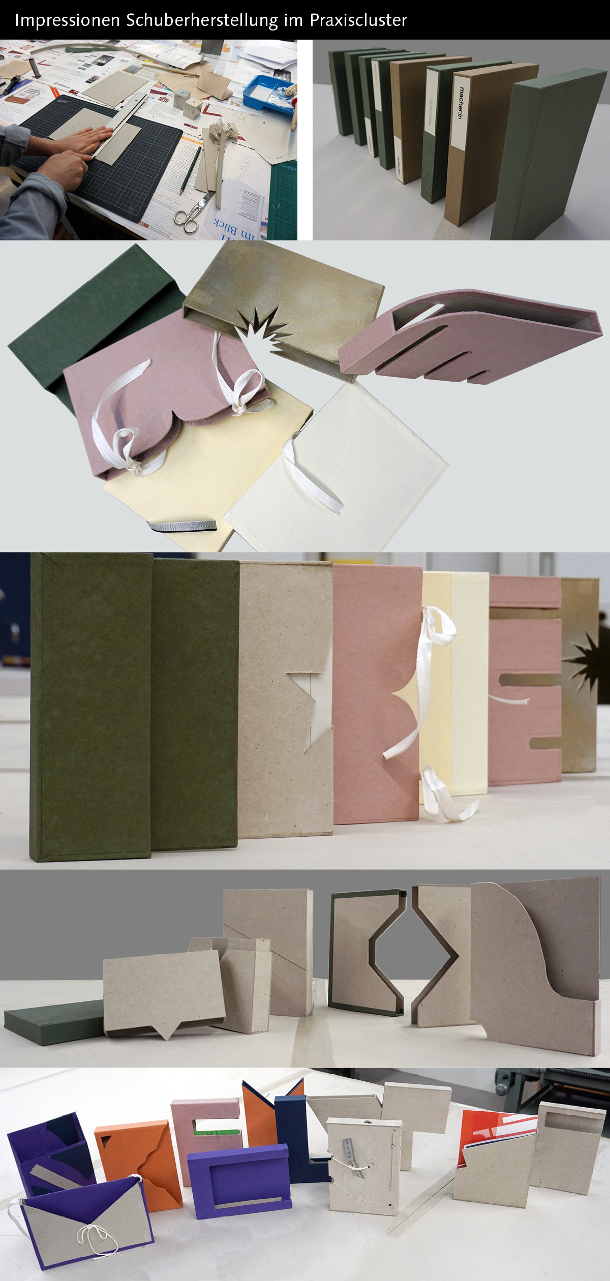 Zu Beginn des zweiten Schuljahres setzen die Schüler:innen ihre kreativen Fertigkeiten im Praxiscluster fort, indem sie einen passenden Schuber produzieren, um die entstandenen Karten zu archivieren.