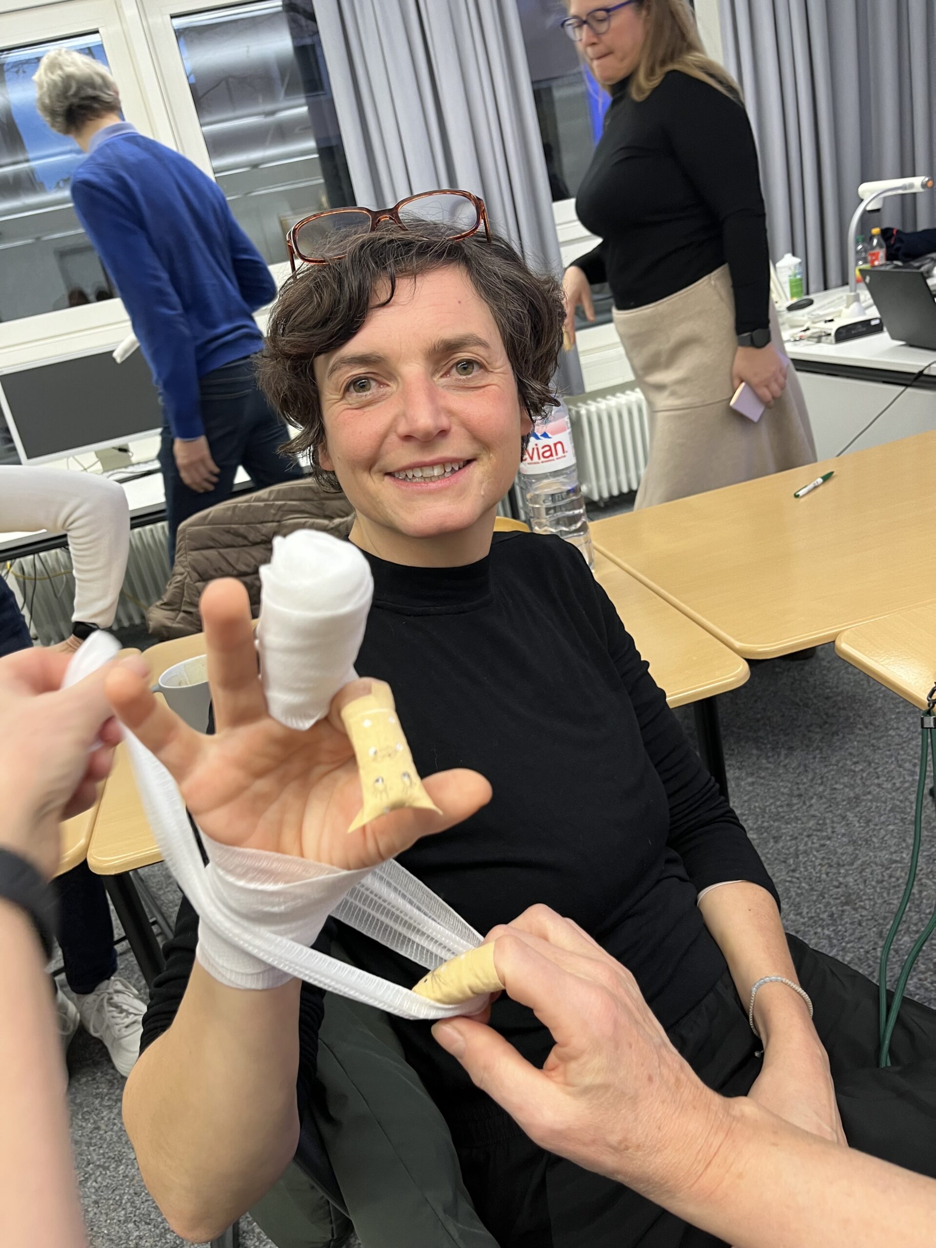Auch neuere Erkenntnisse der Gendermedizin flossen in den Lehrgang ein. Da die medizinische Forschung lange Jahre männlich dominiert war, hat man etwa lange verkannt, dass Herzinfarkte bei Frauen ähnlich häufig vorkommen wie bei Männern. Allerdings äußert sich ein Herzinfarkt bei Frauen durch andere Symptome. Mit weiteren Themen wie seelische Betreuung, Helfen als gesellschaftliche Aufgabe, Schlaganfall, Sonnenstich und viele mehr versetzten die Malteser-Mitarbeiter dafür, dass an der JGS zukünftig noch mehr Lehrkräfte noch kompetenter Erste Hilfe leisten können.