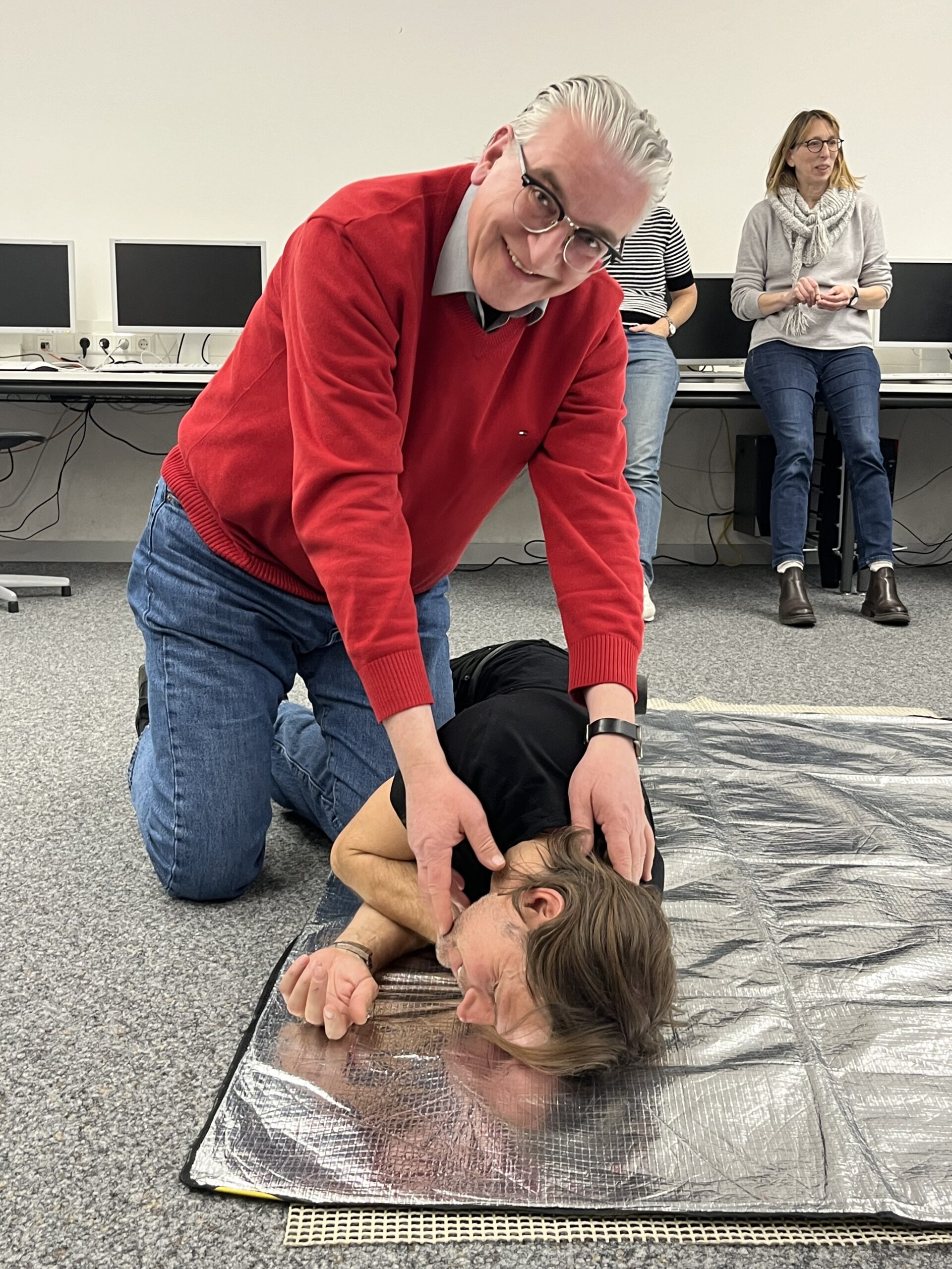 Das Leben zählt zum Wichtigsten, das wir haben. Bis zum Ende unseres Lebens sind wir in unserem Körper. Wenn der Körper in Gefahr gerät, kann auch unser Leben in Gefahr sein. 18 Lehrkräfte der JGS haben am Montag, 25.11.2024 gelernt und geübt, was dann zu tun ist: Erste Hilfe.