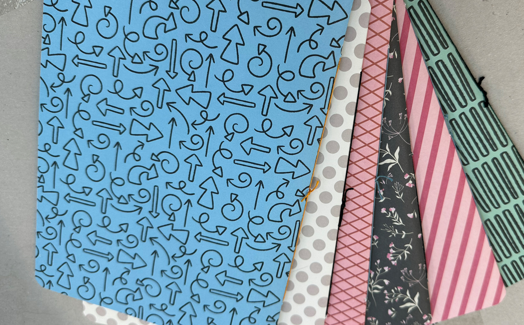 Unter fachlicher Anleitung und mit Handreichungen stellten die Teilnehmer:innen verschiedene Projekte her. Im Mittelpunkt stand in diesem Jahr die Fadenheftung und die Klebebindung. Das Highlight war ein selbst hergestelltes Skizzenbuch mit offener Fadenheftung und Prägung.