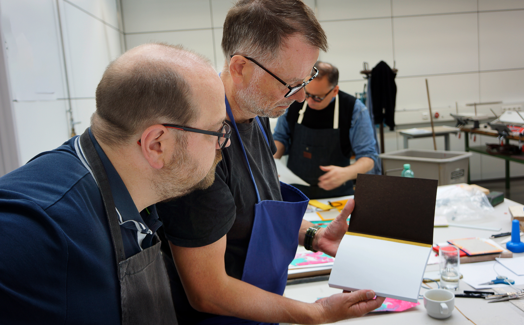 Das Buchbinden ist eine faszinierende Kunst, die traditionelles Handwerk mit modernen Techniken und Materialien verbindet. In diesem zweitägigen Workshop wurden Lehrkräfte aus den Bereichen Bildende Kunst, Gestaltung, Grafik-Design, Druck- und Medientechnik in die Techniken des Buchbindens eingeführt.